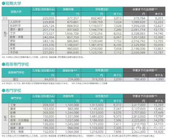 私立大学平均首年110万日元(5万人民币),之后是平均90万日元(4万人民币),且专业不同,费用差距大。