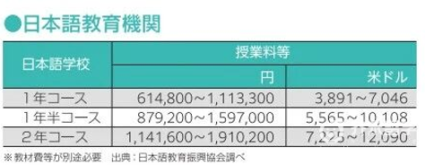文科约 80万-130万日元(3.6万-5.9万人民币)